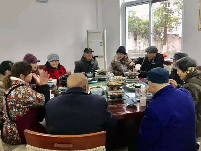 大年三十,光荣院领导班子陪同留在光荣院里过年的老退役军人一起吃年夜饭。
