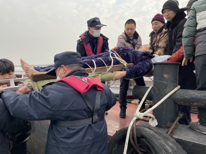 2023年2月4日早晨,安庆海事局双河海巡执法大队值班人员接到辖区船舶“重轮集***”船长来电,称船上有船员摔倒,疼痛难忍,请求救助。