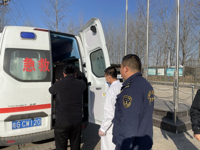 接到电话后,牛头山港大队执法人员立即主动与该轮取得联系,对船舶相关信息、生病船员具体情况、是否需要120救护车援助等情况进行了解,随后立即带领海巡12255艇驶往海螺临时停泊区。海巡艇到达现场后,执法人员协助病员家属迅速将生病船员接上艇,随后海巡艇火速返回大队海事趸船,将船员安全送上岸,并与池州120救护一起将生病船员护送上救护车。