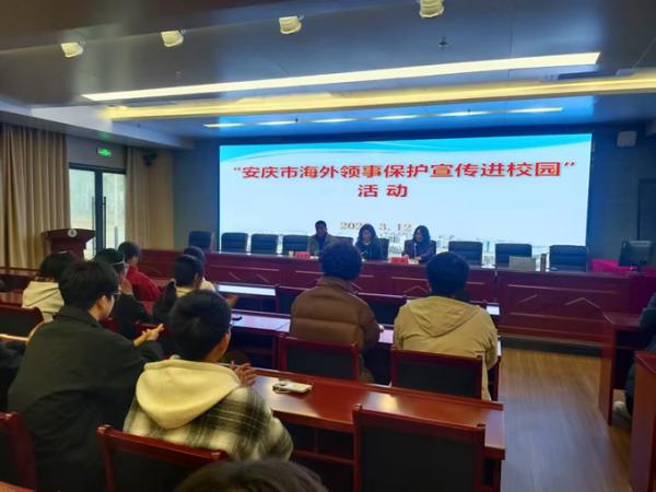 为落实书记项目,积极为民服务,提高我市公民和机构防范应对境外安全风险意识和能力,2025年3月12日下午,市政府办(外办)相关负责同志和第三党支部主要负责同志赴安庆医药高等专科学校,开展海外领事保护宣传“六进”之校园篇活动,积极践行外事为民服务思想。宣讲会上,主要从什么是领事保护、开展海外领事保护知识宣传的重要意义以及在海外遇险怎么寻求帮助等方面向该校师生代表进行了宣讲。同时,还播放了“平安留学”指南视频,进一步深化了海外领事保护知识宣传成效。本次宣讲活动内容丰富、精准实用,增强了广大师生海外出行信心和安全意识。(撰稿:聂晓晖 初审:赵卫英 终审:王桂兵)