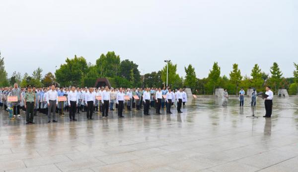 苍松翠柏掩映下的烈士纪念雕像庄严肃穆,孟景伟、张君毅等怀着无比崇敬的心情来到纪念广场中央,静默肃立。9时,向烈士敬献花篮仪式正式开始,张君毅主持仪式。
