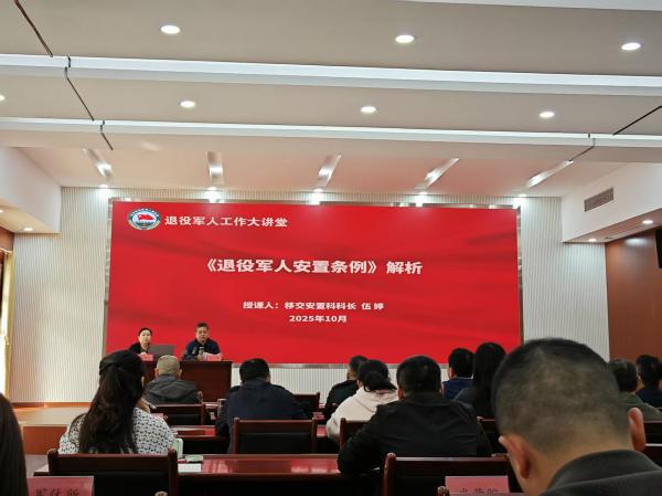 市局移交安置科科长伍婷围绕新出台的《退役军人安置条例》,就退役军人安置政策的历史沿革、现行政策要点等内容进行了深入讲解。