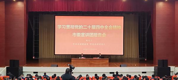 为深入学习贯彻党的二十届四中全会精神,引导机关党员干部完整、准确、系统把握全会精神,推动全会精神在市直机关落地生根,根据市委统一部署安排,11月25日上午,市直机关工委举办2025年第三期机关基层党组织书记培训班暨第44期市直机关大讲堂,邀请市委宣讲团成员、市委讲师团团长陈大士作学习贯彻党的二十届四中全会精神宣讲报告,市直机关工委书记丁伯赞主持并讲话。市直、驻宜各单位基层党组织书记、机关纪委书记、近3年提拔的部分年轻干部共计600余人聆听报告会。