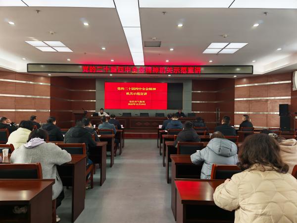 为深入学习贯彻党的二十届四中全会精神,推动全会部署在气象部门落地见效,12月19日上午,安庆市气象局邀请市直机关工委“党旗红”宣讲团开展机关示范宣讲活动。全局党员干部职工齐聚一堂,沉浸式聆听学习。