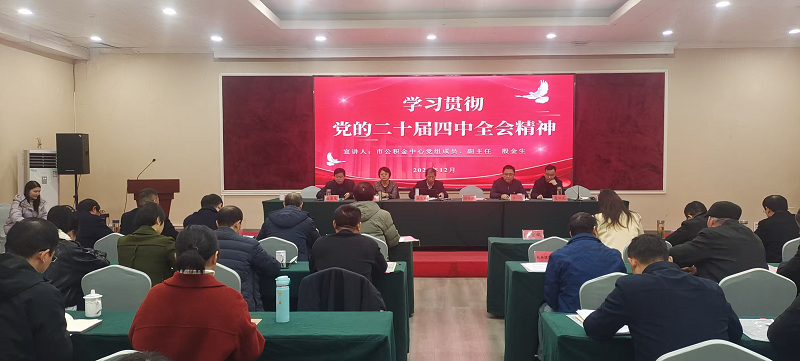 为深入学习贯彻党的二十届四中全会精神,引导全体干部职工将思想和行动统一到中央决策部署上来,切实提升住房公积金管理服务效能,12月20日,市公积金中心开展党的二十届四中全会精神宣讲活动。中心党组成员、副主任殷金生同志作专题宣讲报告,共70名党员参加会议。