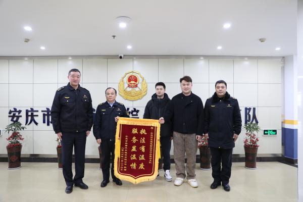 1月27日下午,安庆市路霸汽车租赁有限公司代表将一面绣有“执法有温度 服务显温情”的锦旗,送至市交通运输综合行政执法支队,以此致谢支队四大队在汽车租赁行业监管与服务中彰显的责任担当。