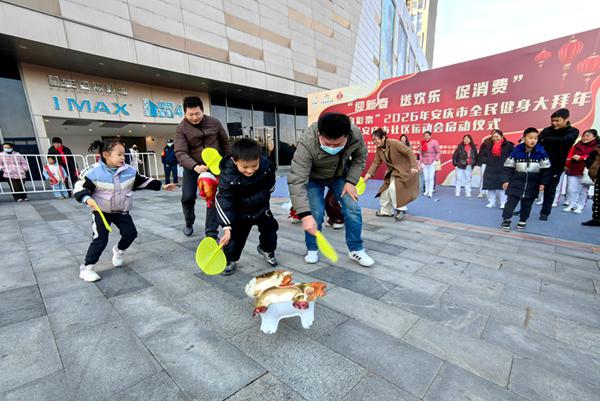 2月8日下午,安庆市新城吾悦广场人头攒动、热闹非凡,以“迎新春 送欢乐 促消费”为主题的2026年安庆市全民健身大拜年暨社区运动会在迎江区启动。市委教育体育工委书记、市教体局局长王良宜出席活动并宣布仪式启动,区委副书记储江出席活动并致辞。