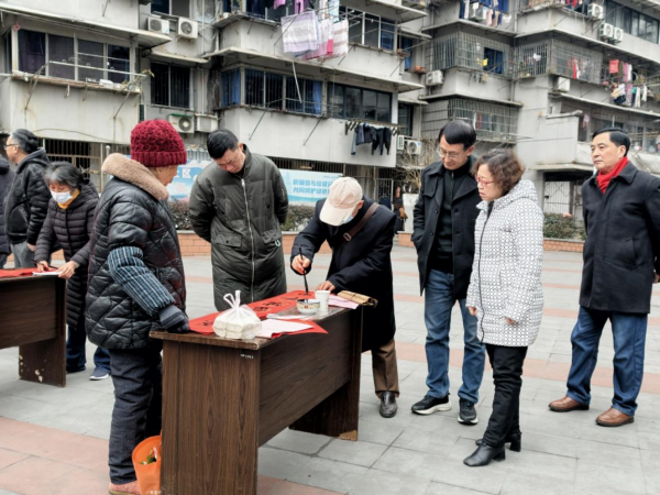新春将至,年味渐浓,为弘扬中华优秀传统文化,将节日的温暖与祝福送到社区居民的家门口、心坎上。2月10日,安庆市委老干部局联合市“夕照增辉”老干部志愿服务队到太平寺社区开展“夕照增辉笔墨贺岁 银龄服务润社区”主题党日活动。