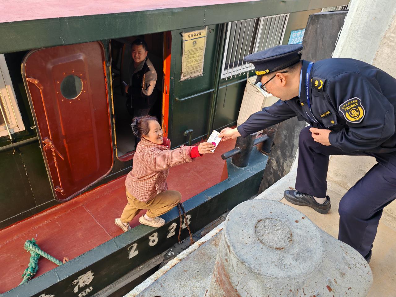 秉持“执法为民、监管有情”宗旨,交通执法人员在确认船舶隐患整改到位后,立即启动应急帮扶。一方面安排专人驱车前往附近药房购置药品,送药时细致叮嘱服药及防护事项;另一方面紧急与枞阳船闸管理方协调,延长关闸时间开辟“绿色通道”。