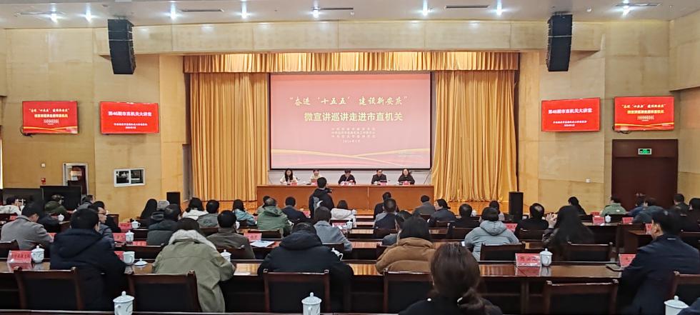 为深入学习贯彻党的二十届四中全会精神和习近平总书记考察安徽重要讲话精神,全面落实全市“比学赶超、狠抓落实”大会部署,3月18日下午,市直机关工委举办第46期“市直机关大讲堂”,邀请4名宣讲员分别聚焦1个核心专题,开展“奋进十五五 建设新安庆”微宣讲巡讲。市直机关工委书记丁伯赞主持并讲话。